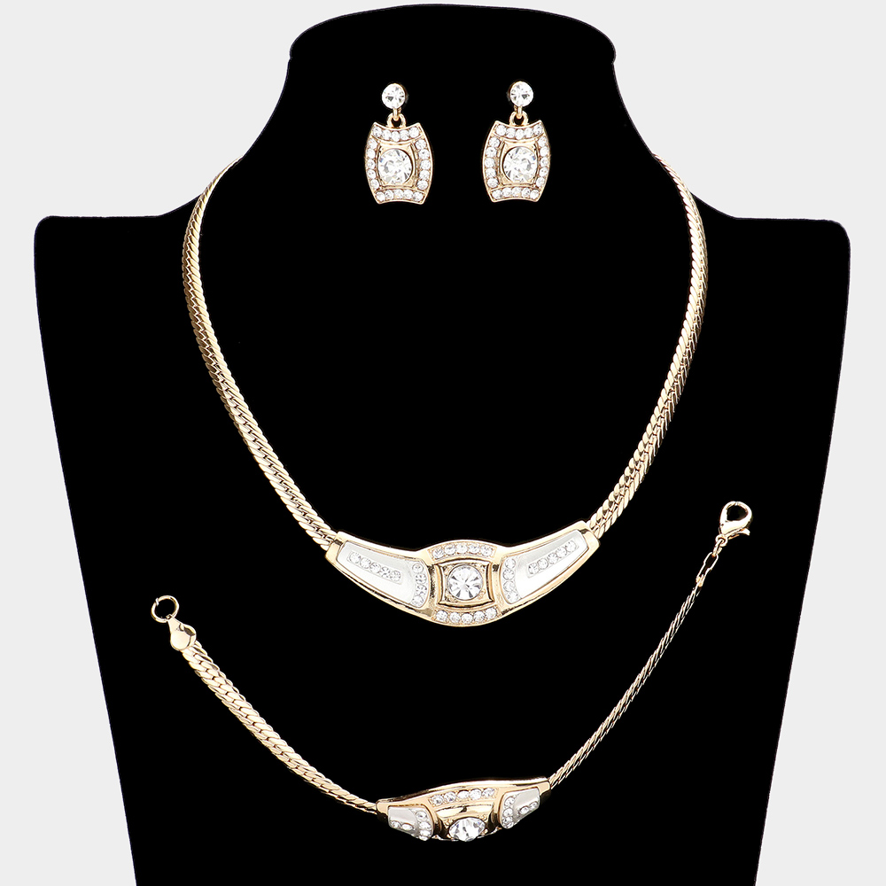 3PCS - Round Stone Accented Rhinestone Necklace Jewelry Set