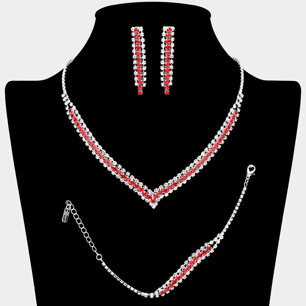 • Elevate any special occasion with this refined jewelry set featuring a matching necklace, bracelet, and earrings. Its sparkling rhinestone arrangement creates a cohesive, eye-catching look designed to enhance formal outfits with timeless sophistication and graceful shine.