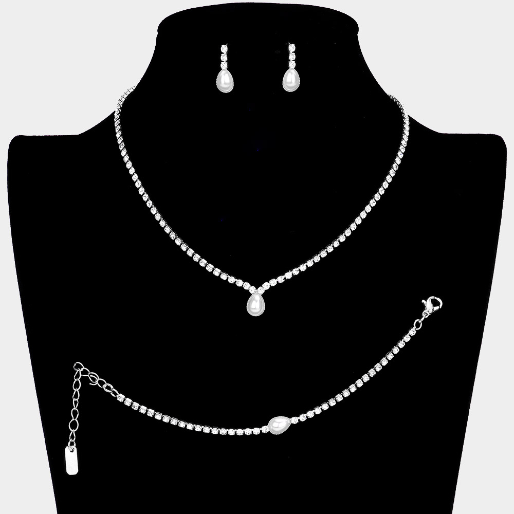 3PCS - Teardrop Pearl Accented Rhinestone Necklace Jewelry Set