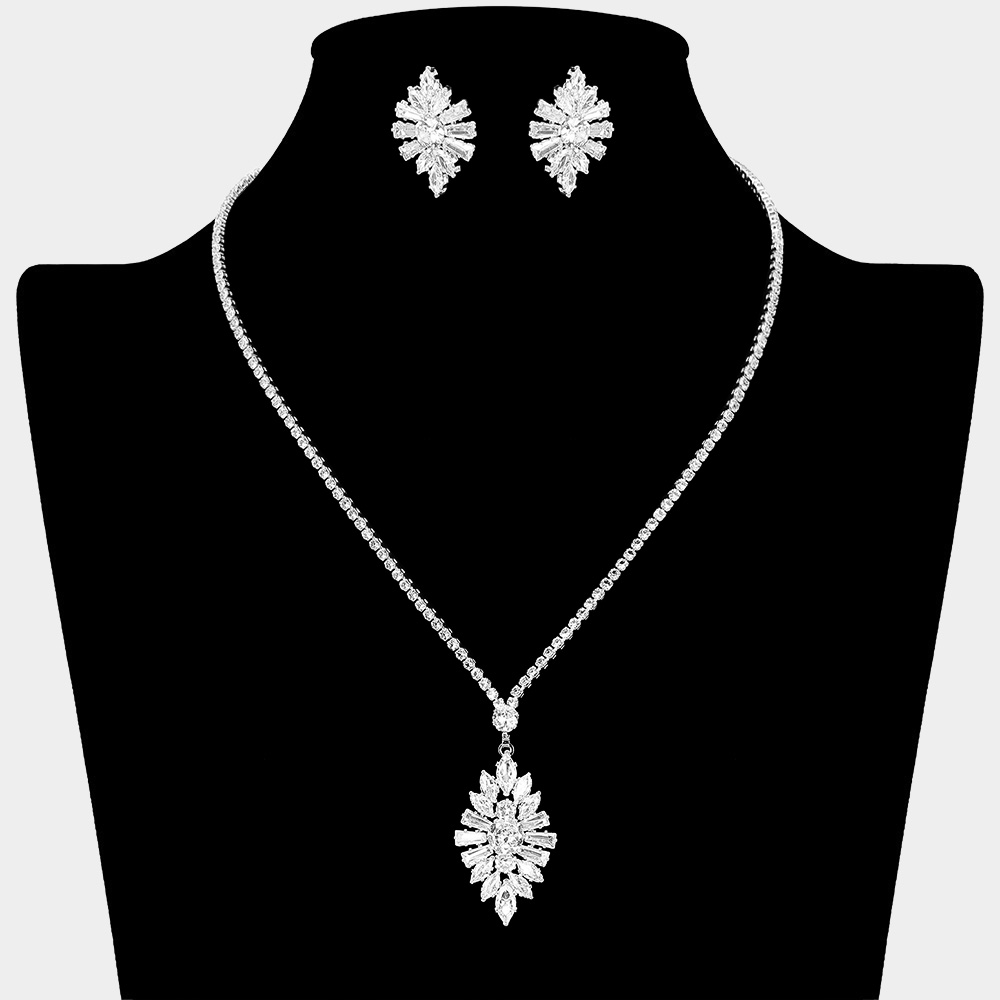 Baguette CZ Stone Cluster Embellished Pendant Rhinestone Paved Necklace