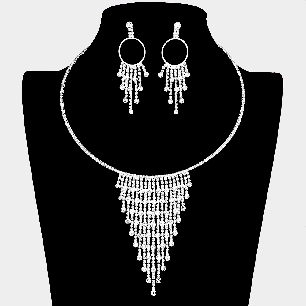 Metal Chain Fringe Oval Hoop Pendant Long Necklace