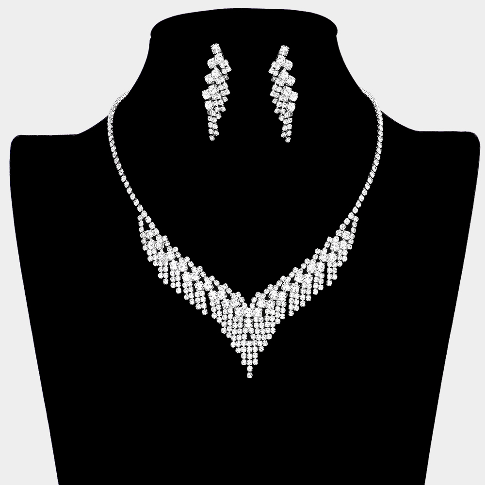 Teardrop Stone Pointed Flower Rhinestone Paved Necklace