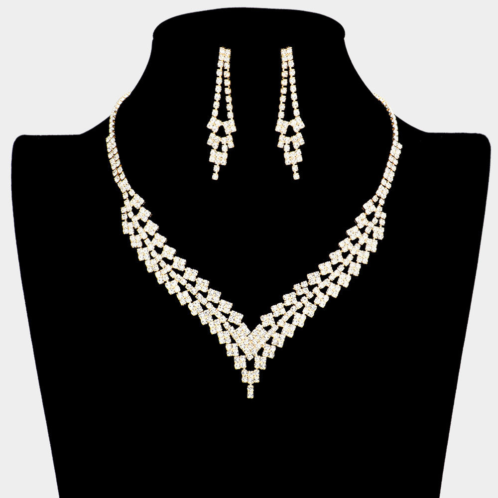 Rhinestone Trimmed Teardrop Stone Accented Dangle Evening Earrings