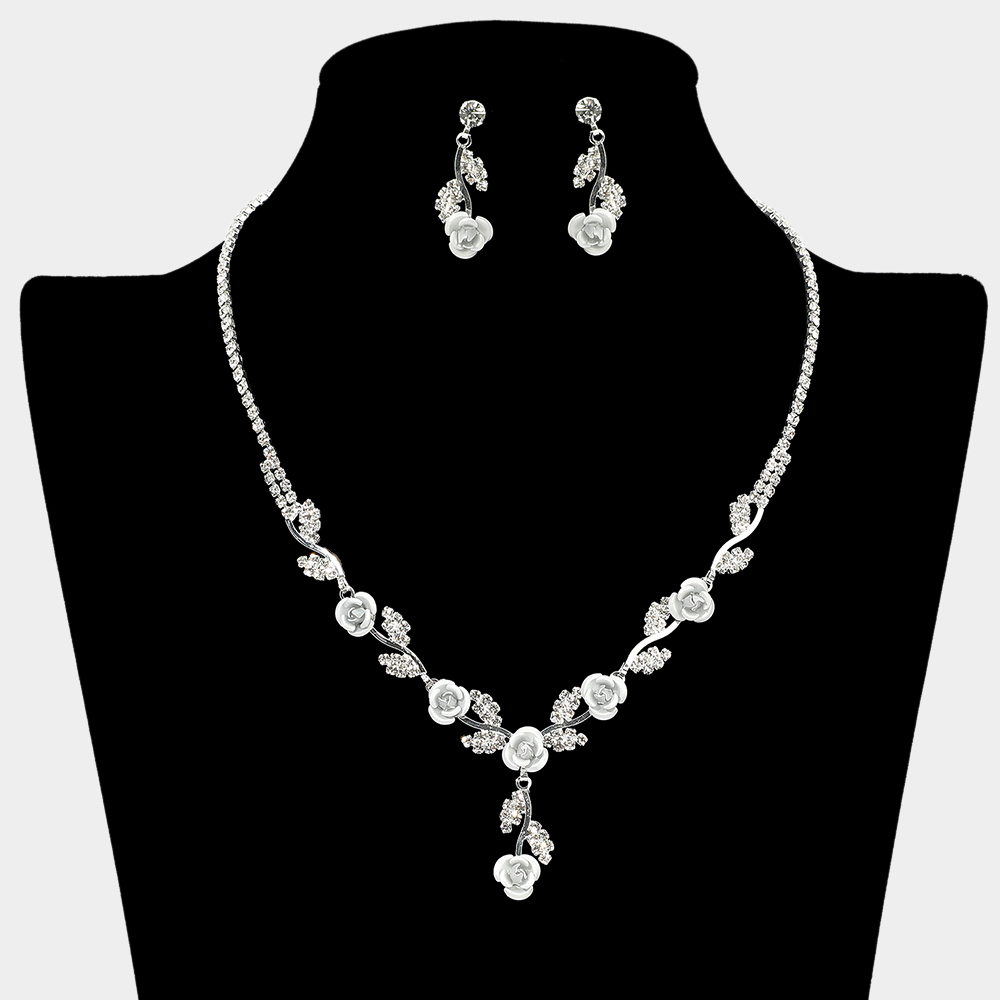 Colored Rose Flower Marquise Stone Cluster Link Rhinestone Paved Necklace