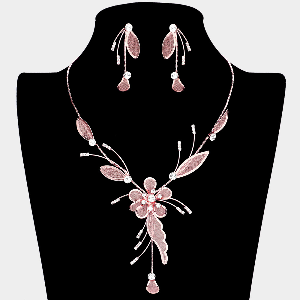 • Beautiful floral necklace and earring set designed with delicate flower and leaf accents. Perfect for weddings, parties, and formal occasions, this jewelry set adds timeless elegance and charm to your look.