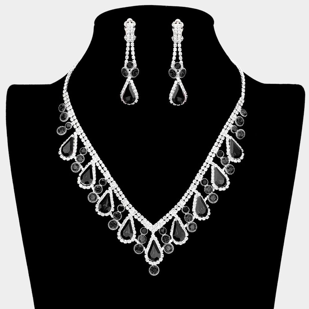 Crystal Rhinestone Bubbly Teardrop Necklace Clip on Earring Set