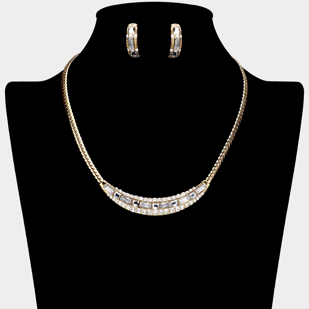 Stainless Steel Stone Paved Heart Safety Pin Pendant Necklace