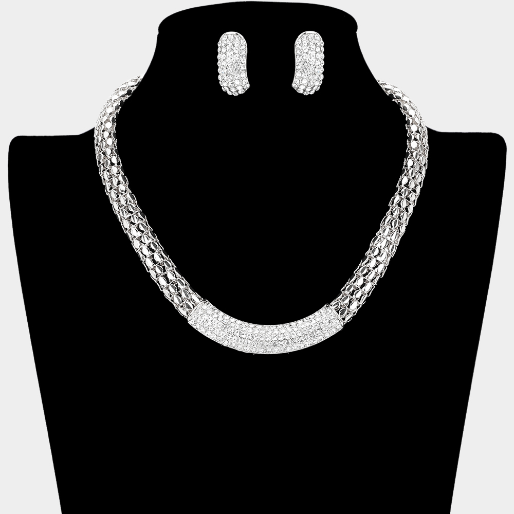 Crystal Rhinestone Metal Mesh Necklace