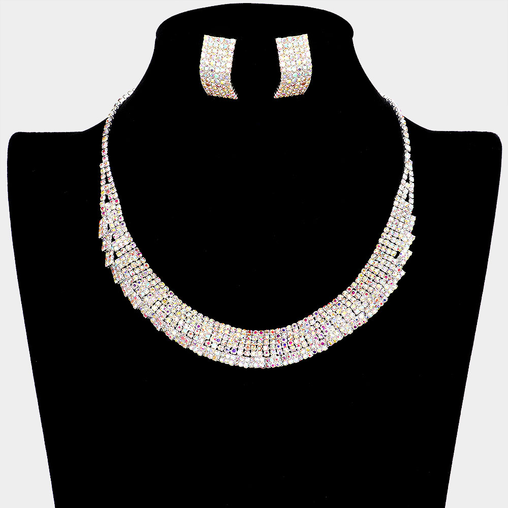 Crystal Rhinestone Pave Collar Necklace Clip On Earring Set