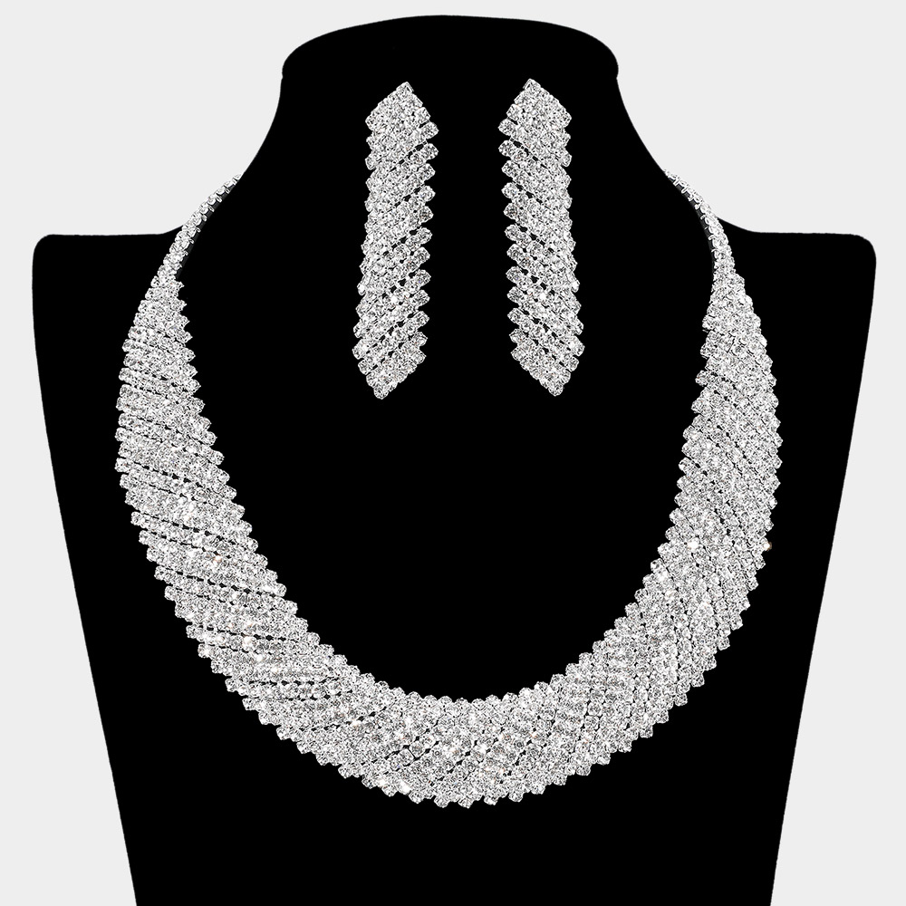 Rhinestone Paved Fringe Jewelry Set