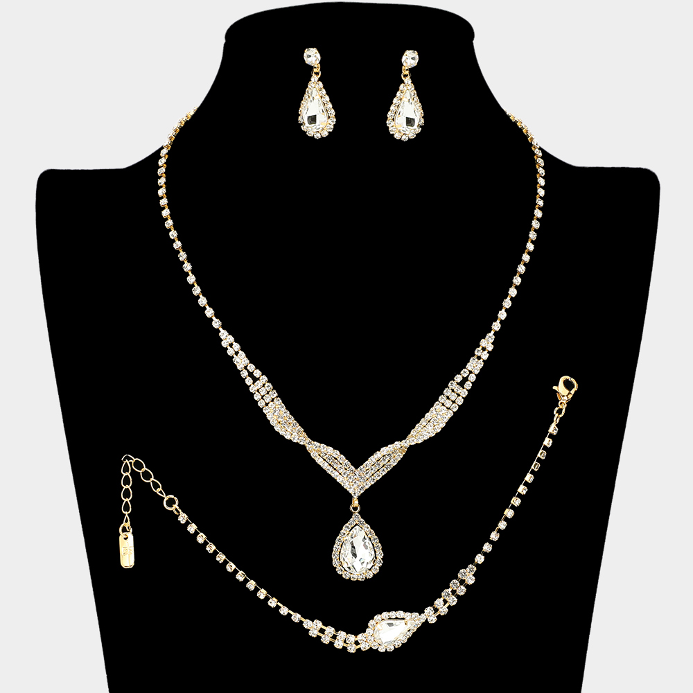 Crystal Rhinestone Teardrop Pendant Necklace Jewelry Set