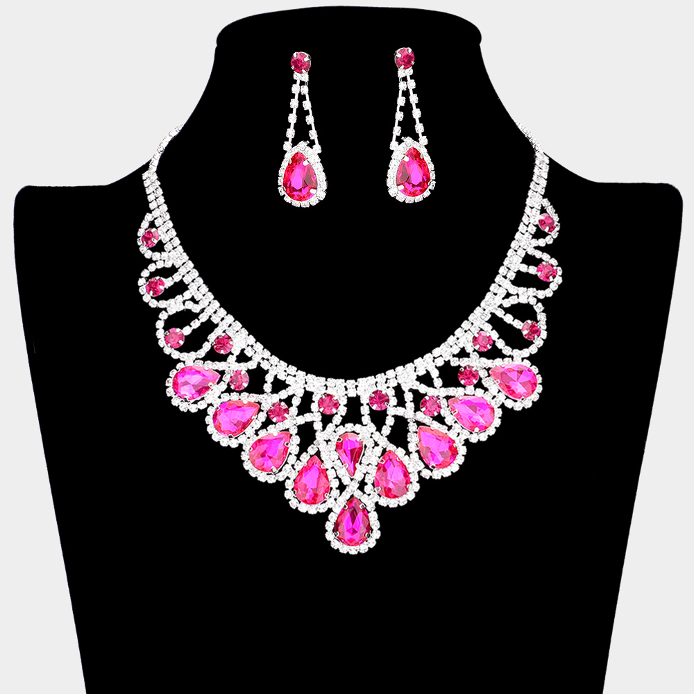 Crystal Teardrop Rhinestone Pave Evening Necklace