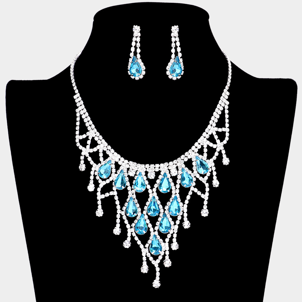 Crystal Teardrop Rhinestone Pave Net Collar Necklace