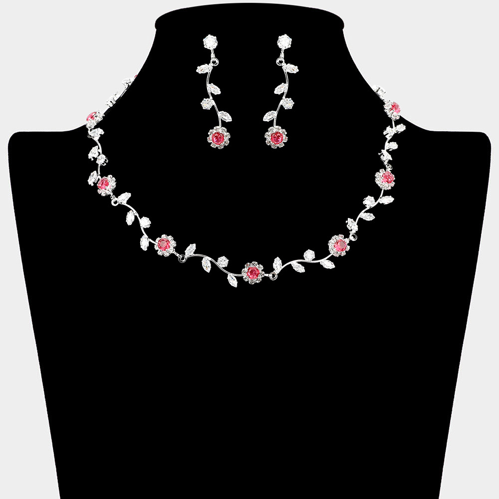 CZ Flower Leaf Stone Cluster Vine Necklace