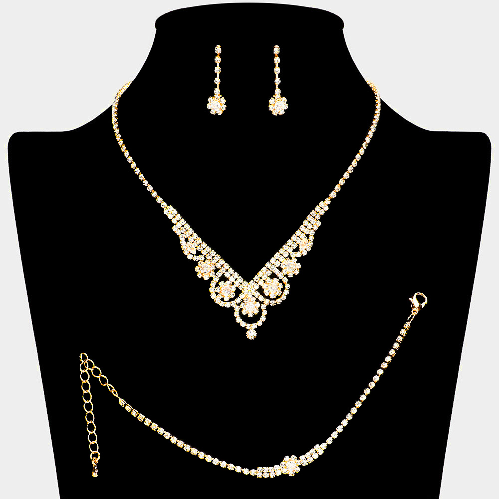 CZ Flower Pointed Rhinestone Paved Necklace Jewelry Set