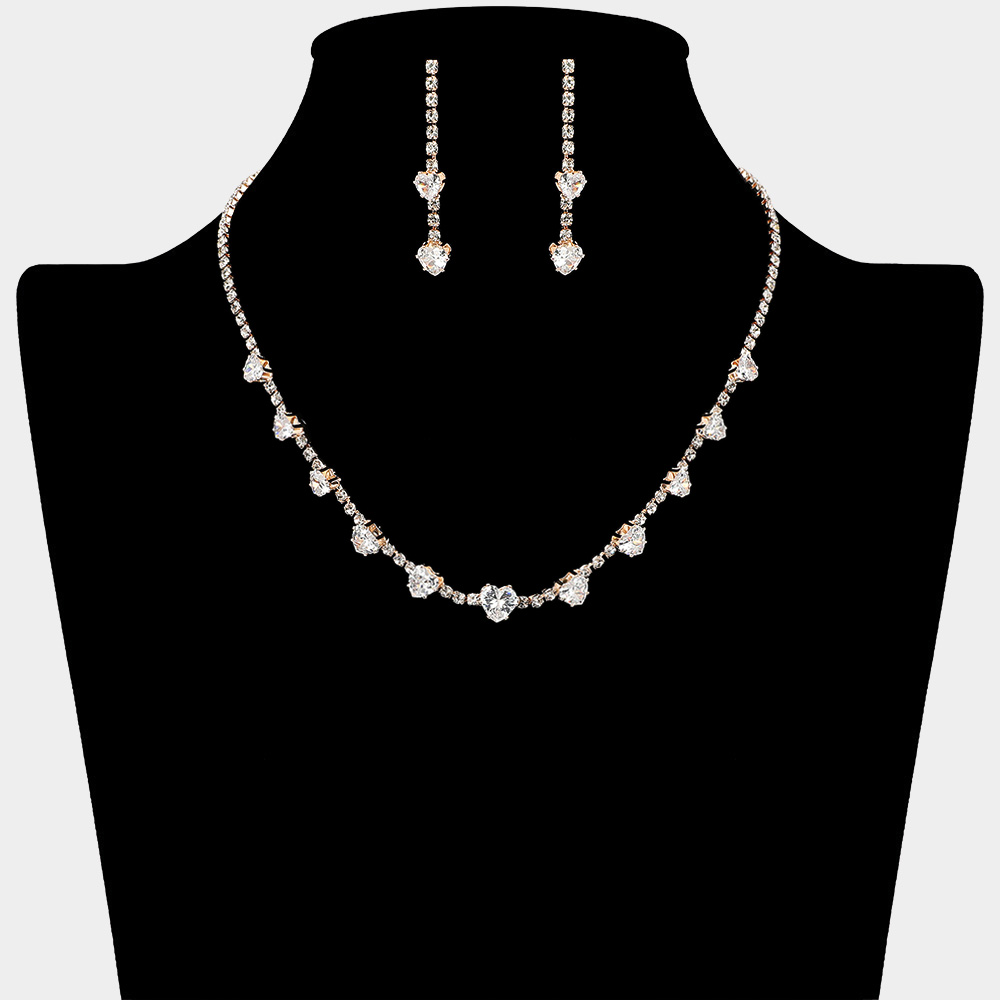 CZ Heart Stone Cluster Station Rhinestone Paved Necklace