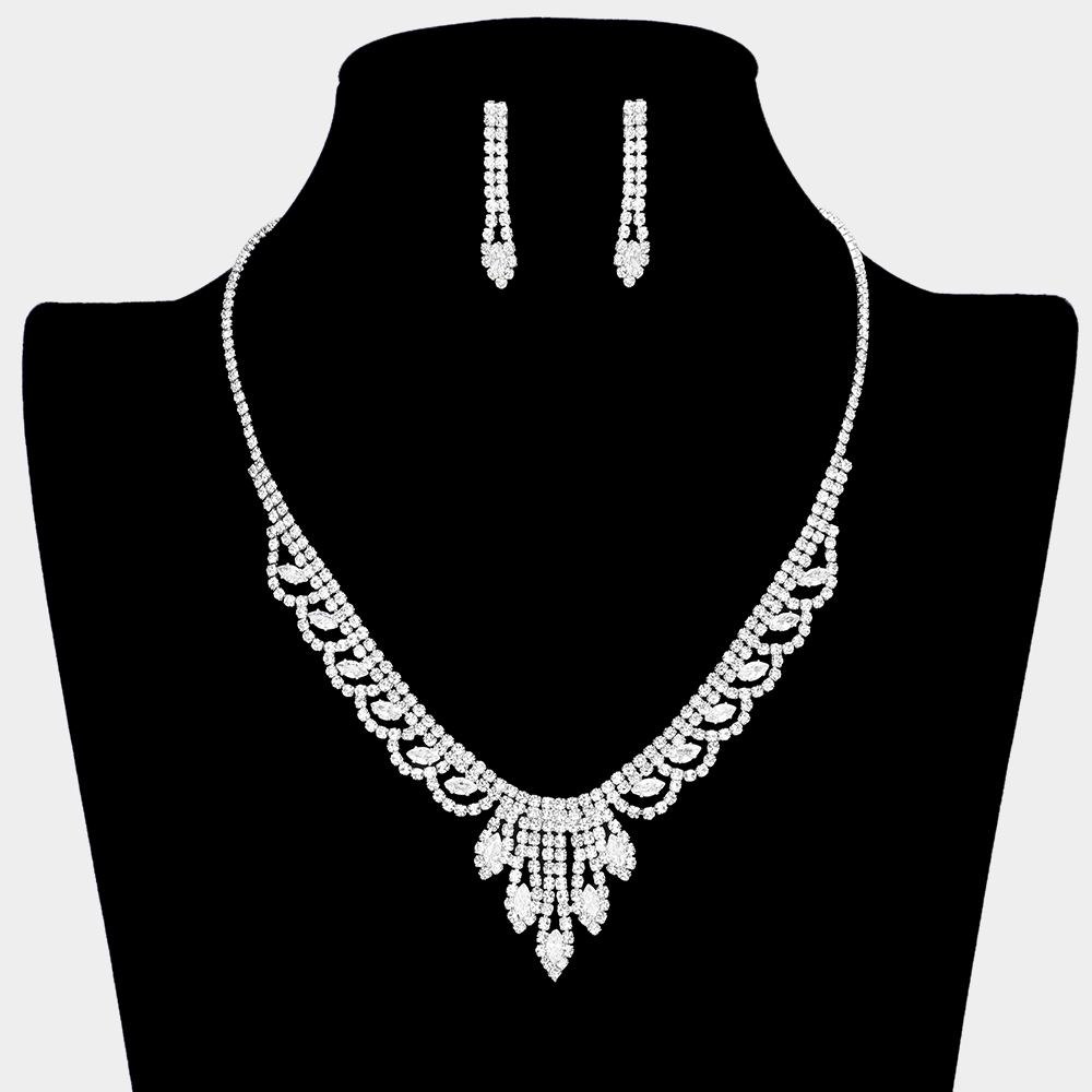 Round Marquise Stone Embellished Rhinestone Pave Necklace