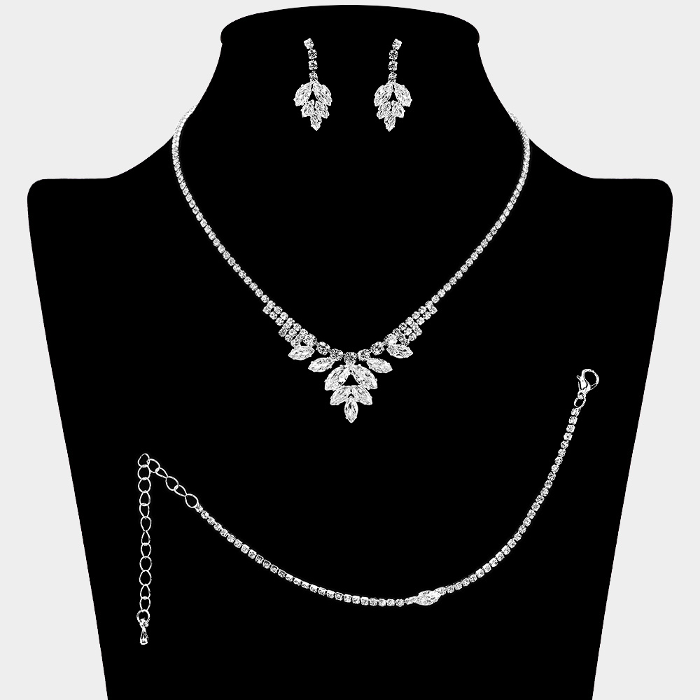 CZ Marquise Stone Embellished Rhinestone Paved Jewelry Set