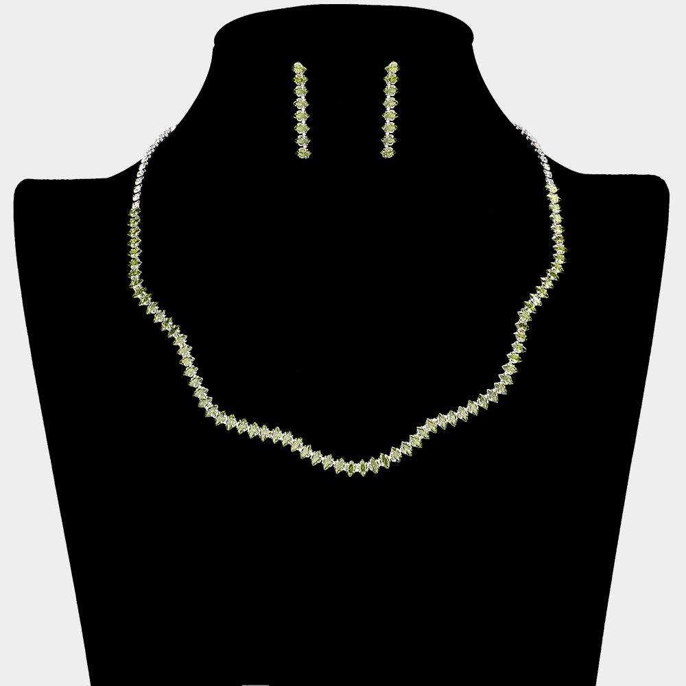 • Stylish jewelry set featuring a zigzag CZ necklace with matching earrings. A modern yet elegant design perfect for parties, weddings, or any formal occasion that calls for sparkle.