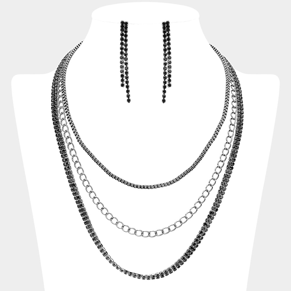 Oval Stone Accented V Shaped Rhinestone Necklace Clip on Earring Set
