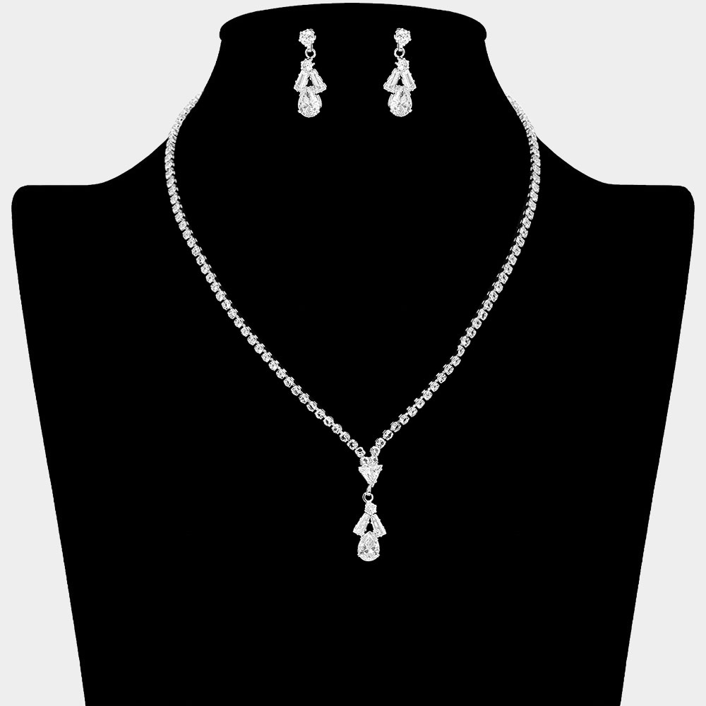 CZ Stone Teardrop Baguette Triangle Pendant Accent Necklace