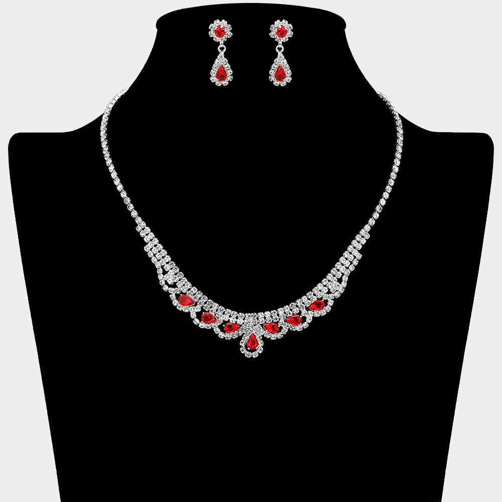 • Shine at any special occasion with this teardrop crystal necklace and earring set. Featuring a layered design with sparkling accents, it adds elegance and sophistication to bridal, prom, or evening looks. A striking accessory set for standout style.
