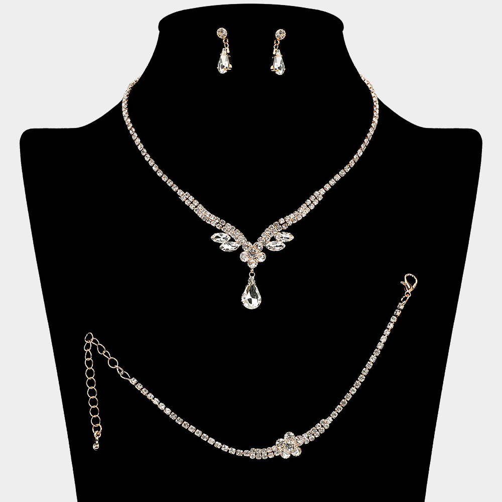CZ Teardrop Stone Pointed Marquise Stone Cluster Embellished Rhinestone Paved Jewelry Set