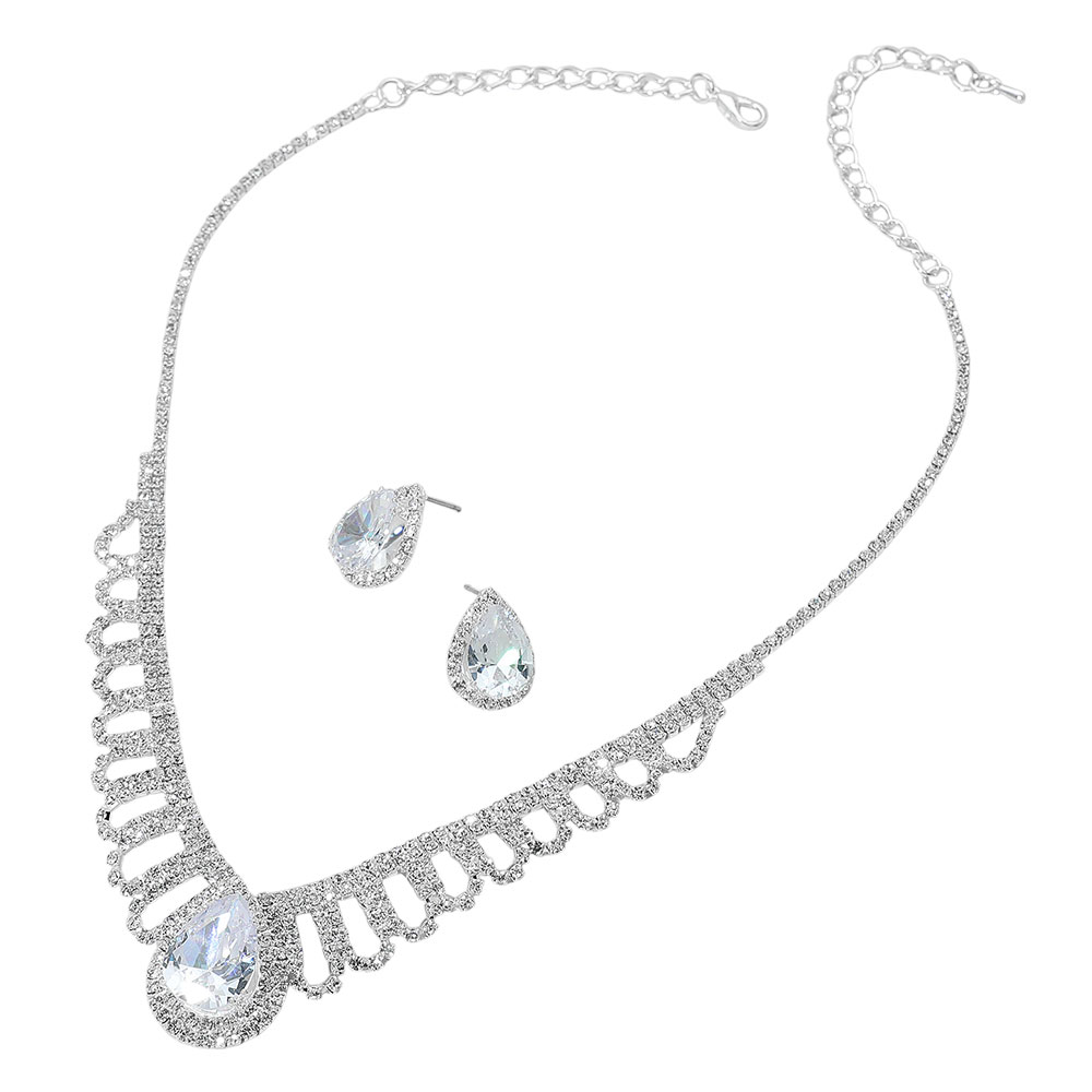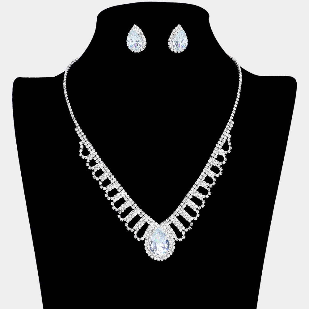 CZ Teardrop Stone Pointed Rhinestone Paved Necklace