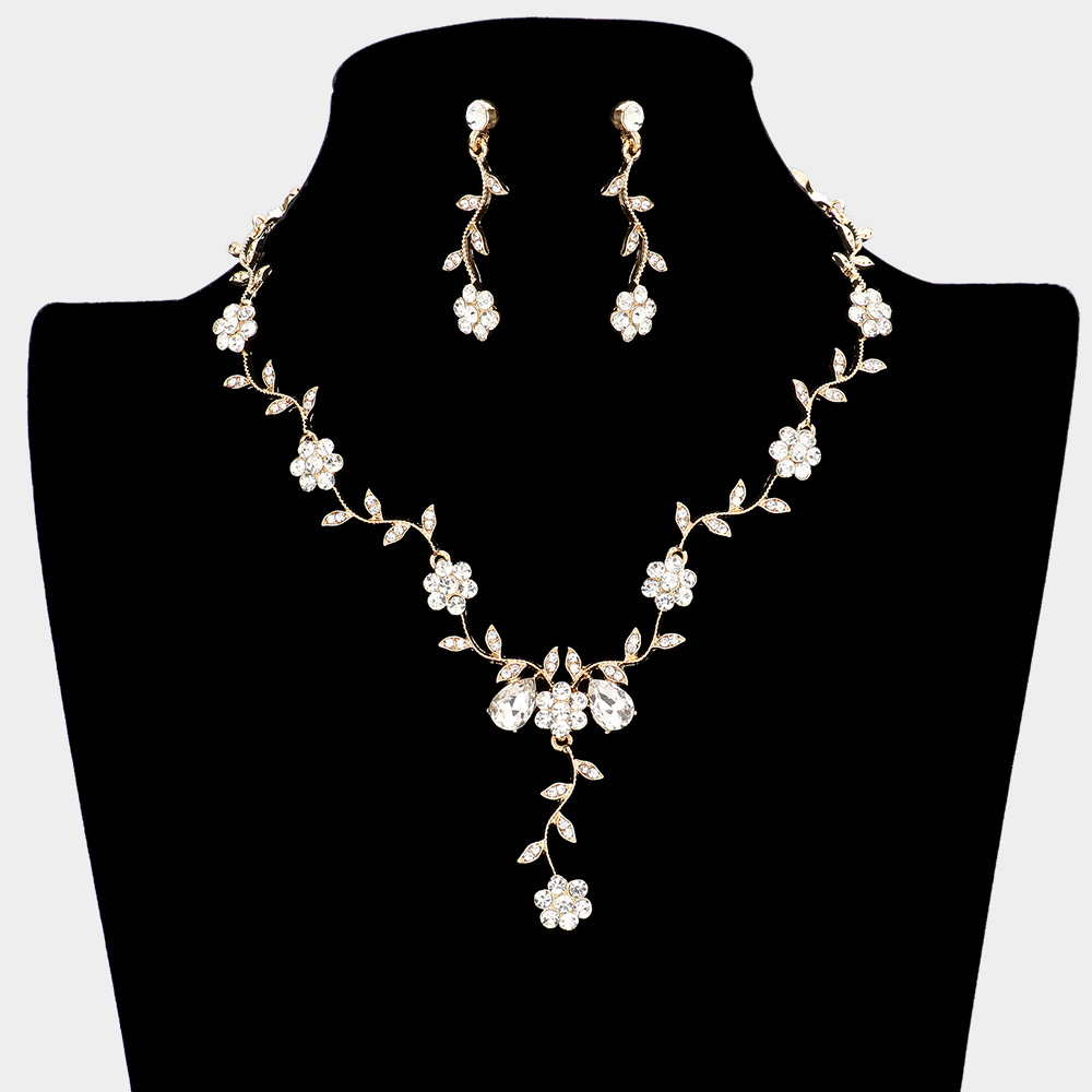 Flower Leaf Cluster Vine Rhinestone Necklace