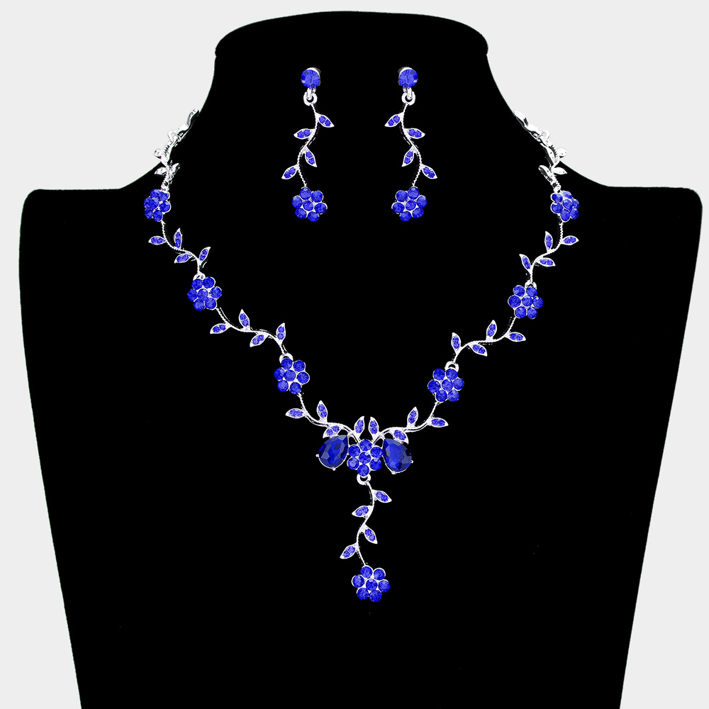 Flower Leaf Cluster Vine Rhinestone Necklace