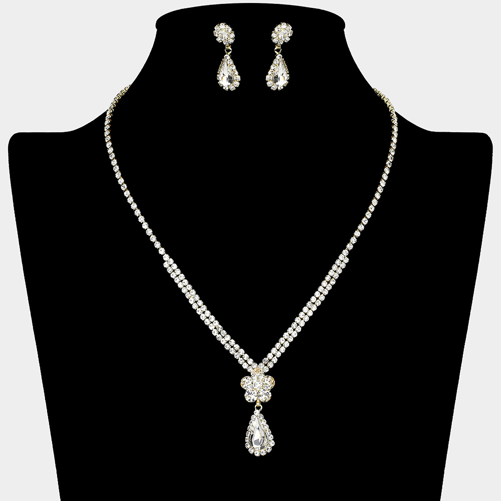 Flower Stone Pointed Teardrop Stone Pendant Rhinestone Paved Necklace