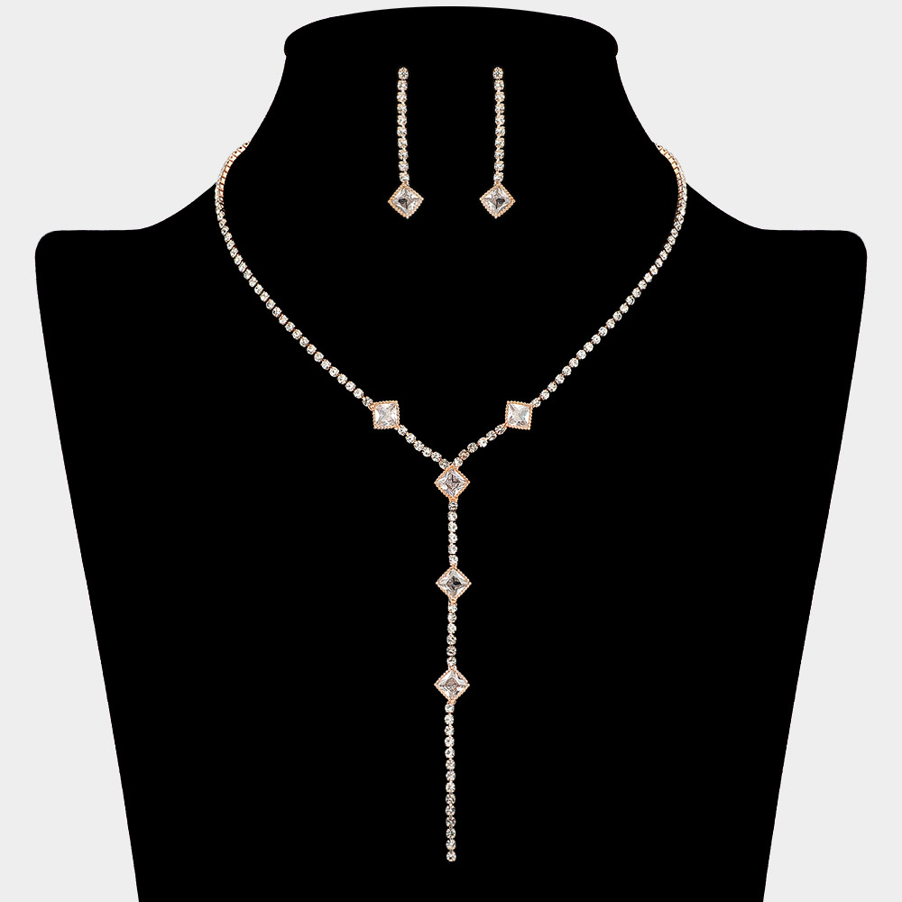 Geometric Drop CZ Rhinestone Y Shape Necklace Geometric Drop CZ Rhinestone Y Shape Necklace