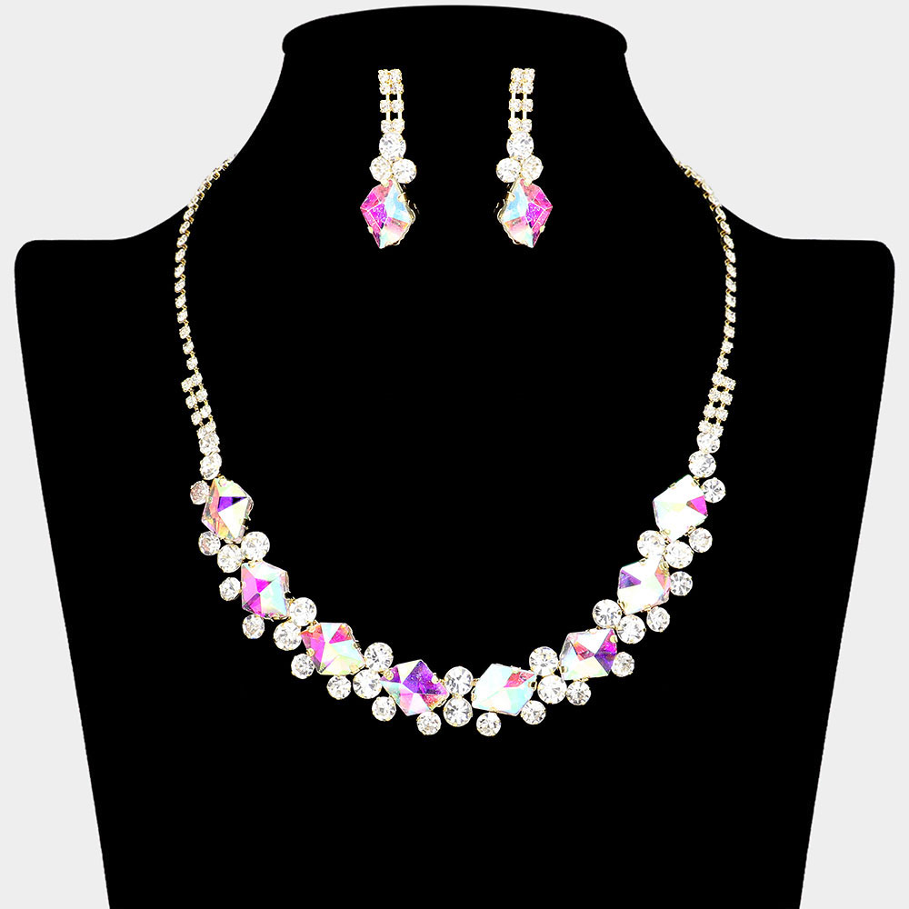 Glass Crystal Stone Cluster Pointed Rhinestone Paved Necklace
