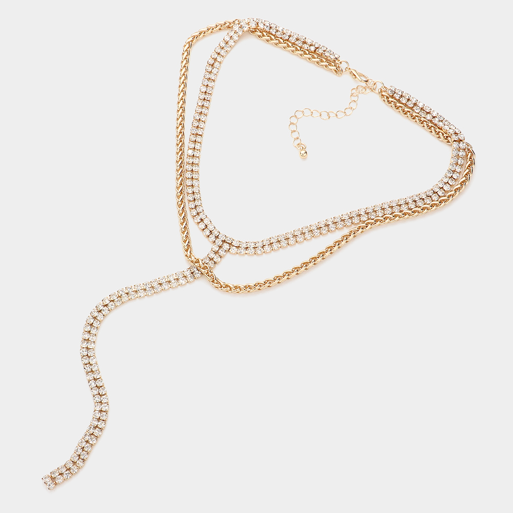 Gold Dipped Rhinestone Y Necklace