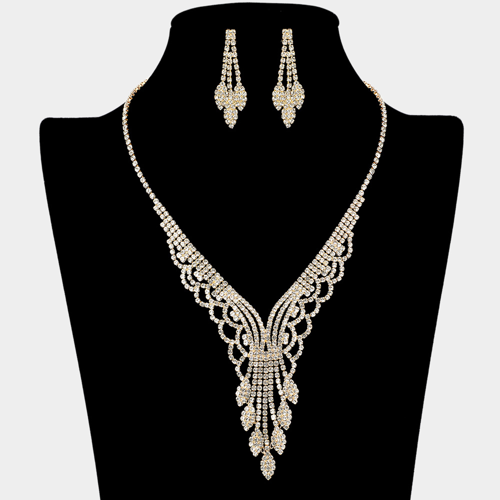 Marquise Accented Rhinestone Paved V Shaped Necklace