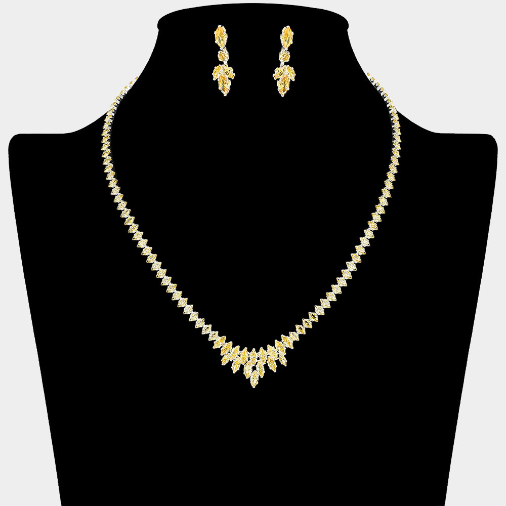 • Elegant necklace and earring set featuring a symmetrical marquise crystal design. Ideal for formal events, this set brings refined sparkle and timeless sophistication to any special occasion look.