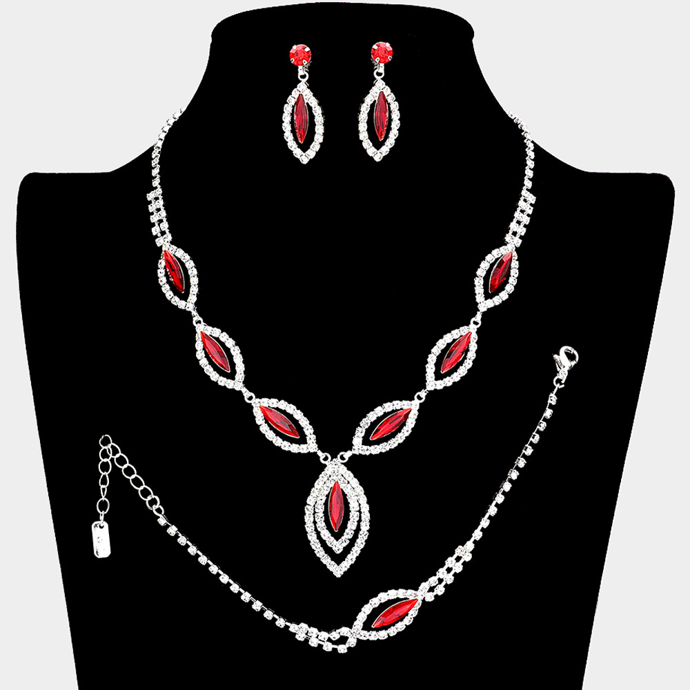 Marquise Stone Pendant Rhinestone Paved Necklace