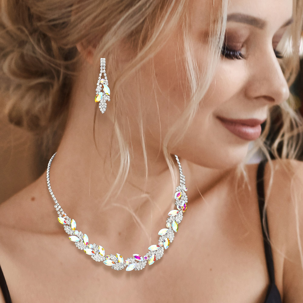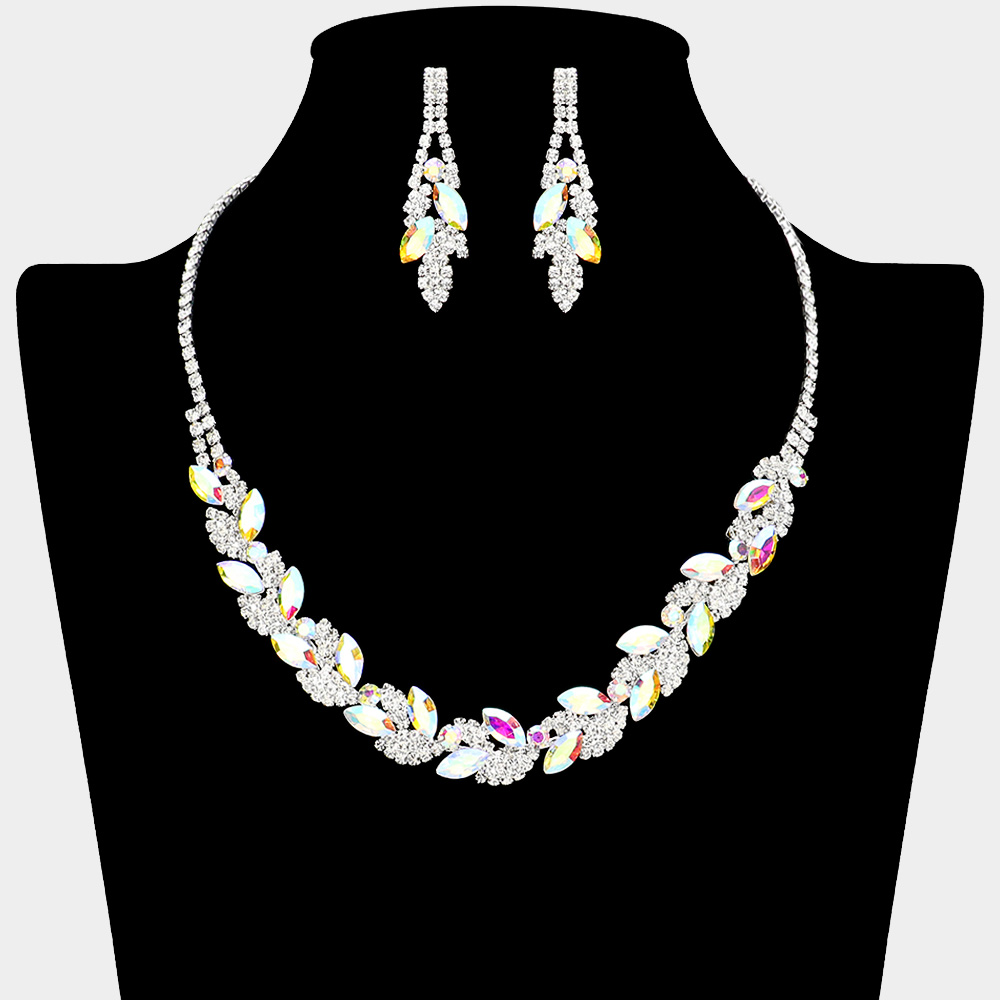 Rhinestone Paved Wavy Necklace Jewelry Set