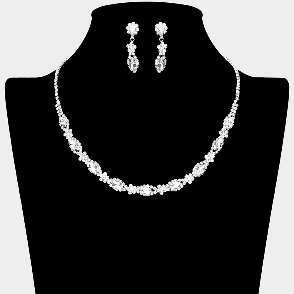 Teardrop Glass Stone Cluster Embellished Evening Bib Necklace