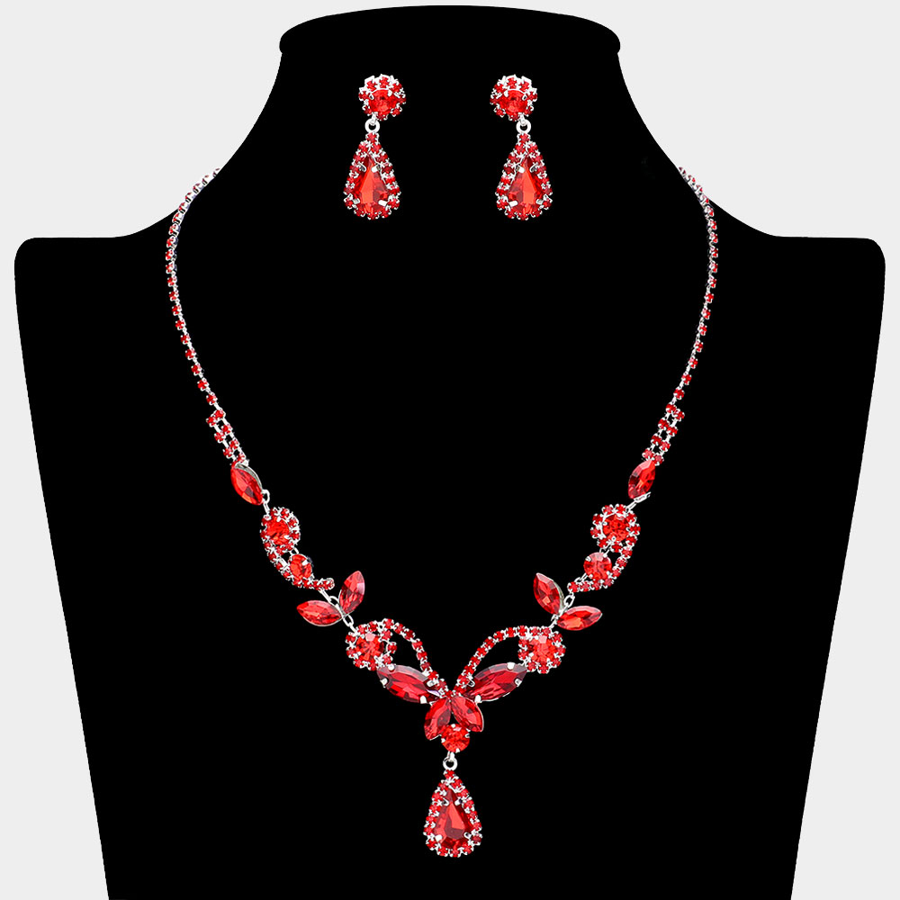 Marquise Stone Cluster Embellished Rhinestone Paved Necklace