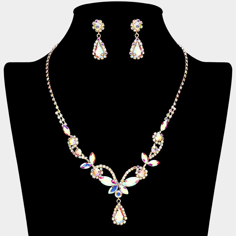 Teardrop Center Marquise Stone Cluster Evening Necklace