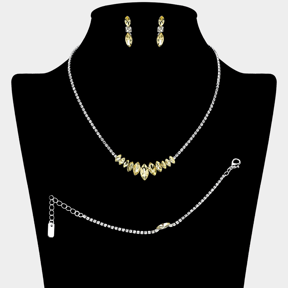 Marquise Stone Cluster Link Rhinestone Paved Jewelry Set