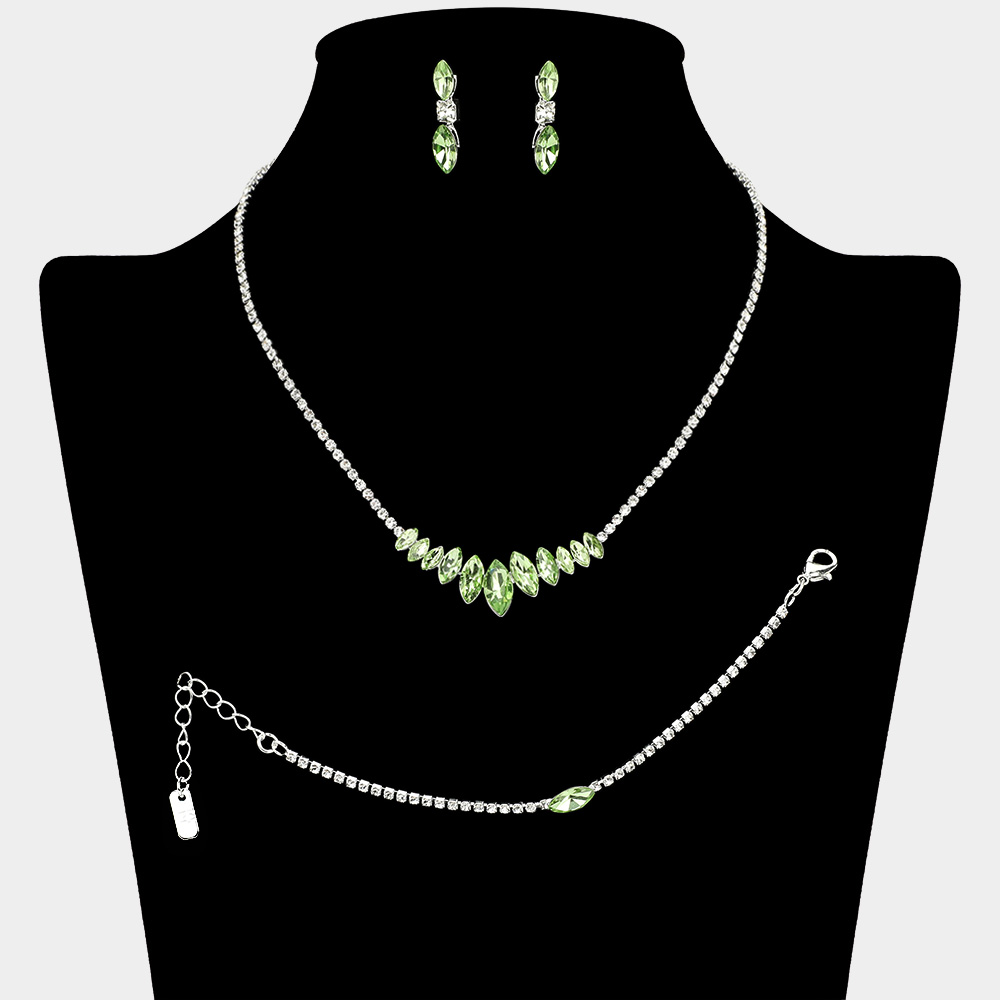 Marquise Stone Cluster Link Rhinestone Paved Jewelry Set