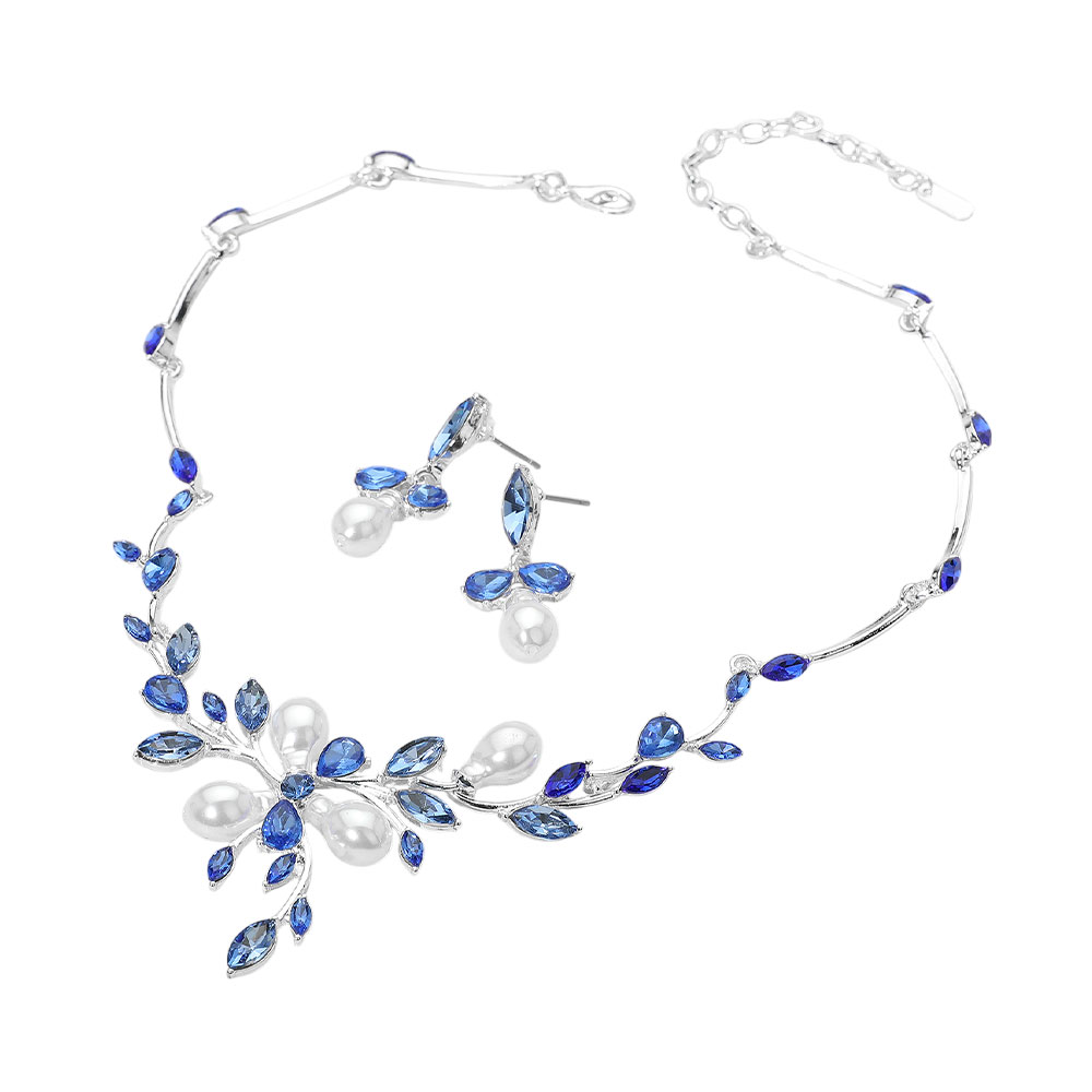 Marquise Stone Cluster Pearl Embellished Leaf Branch Necklace