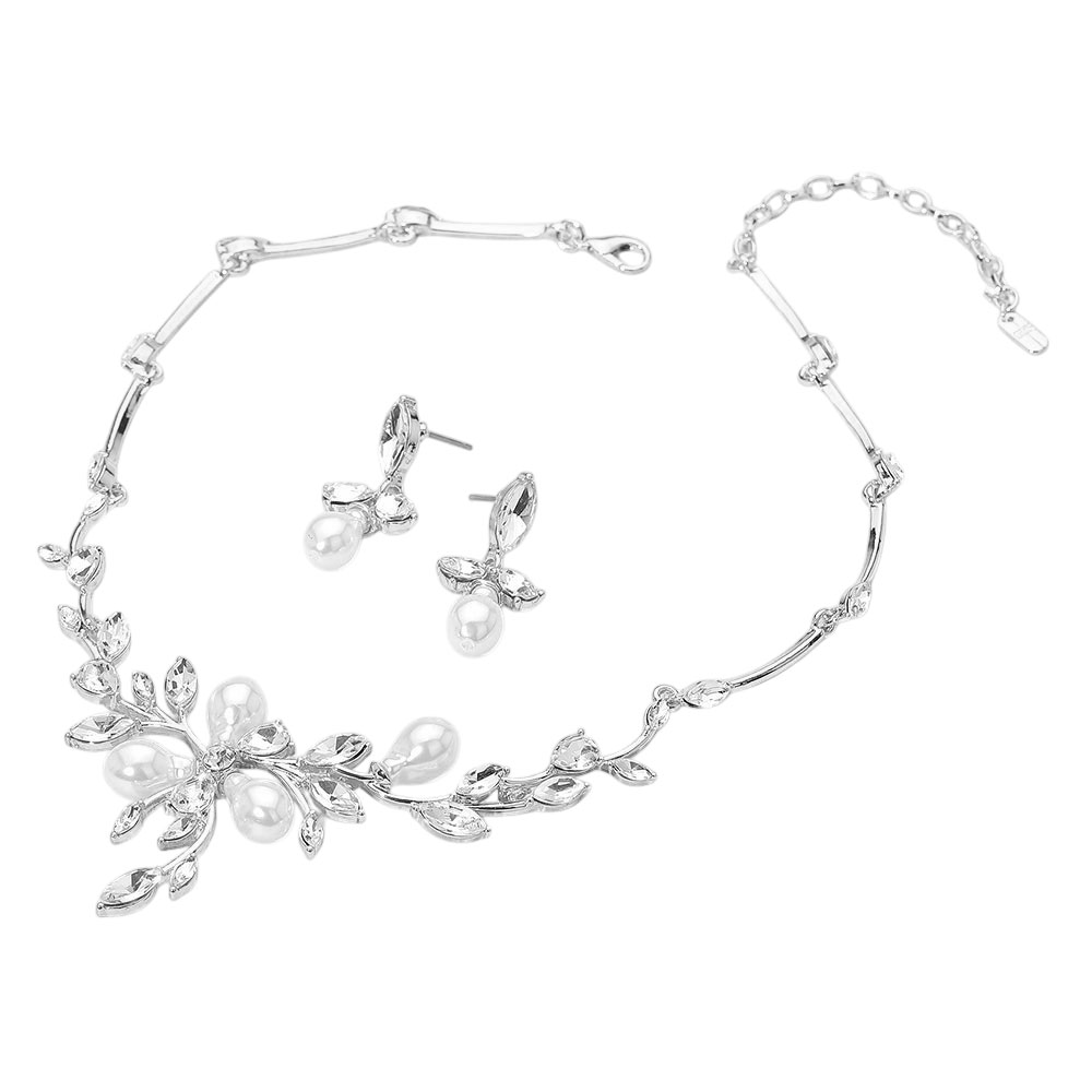 Marquise Stone Cluster Pearl Embellished Leaf Branch Necklace