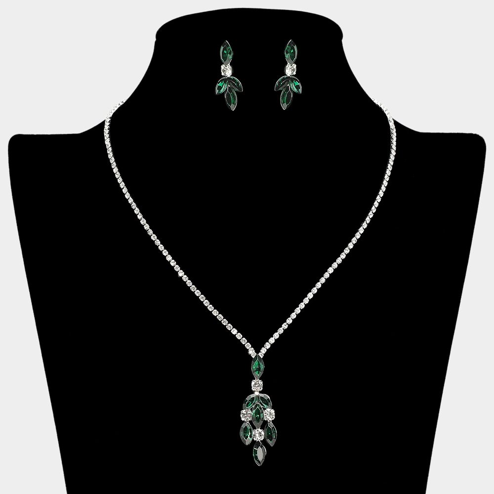 • Stylish necklace and earring set with teardrop and marquise-cut stones. Ideal for weddings, parties, and elegant evenings. Adds a sparkling touch of sophistication to any special occasion.