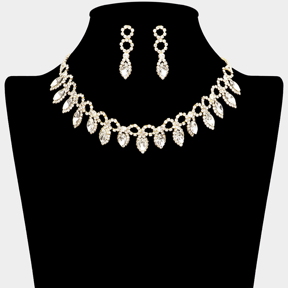 Marquise Stone Cluster Rhinestone Evening Necklace