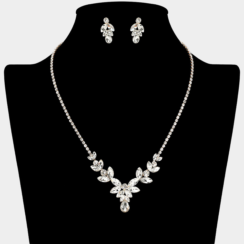 Marquise Stone Cluster Teardrop Pointed Rhinestone Paved Necklace