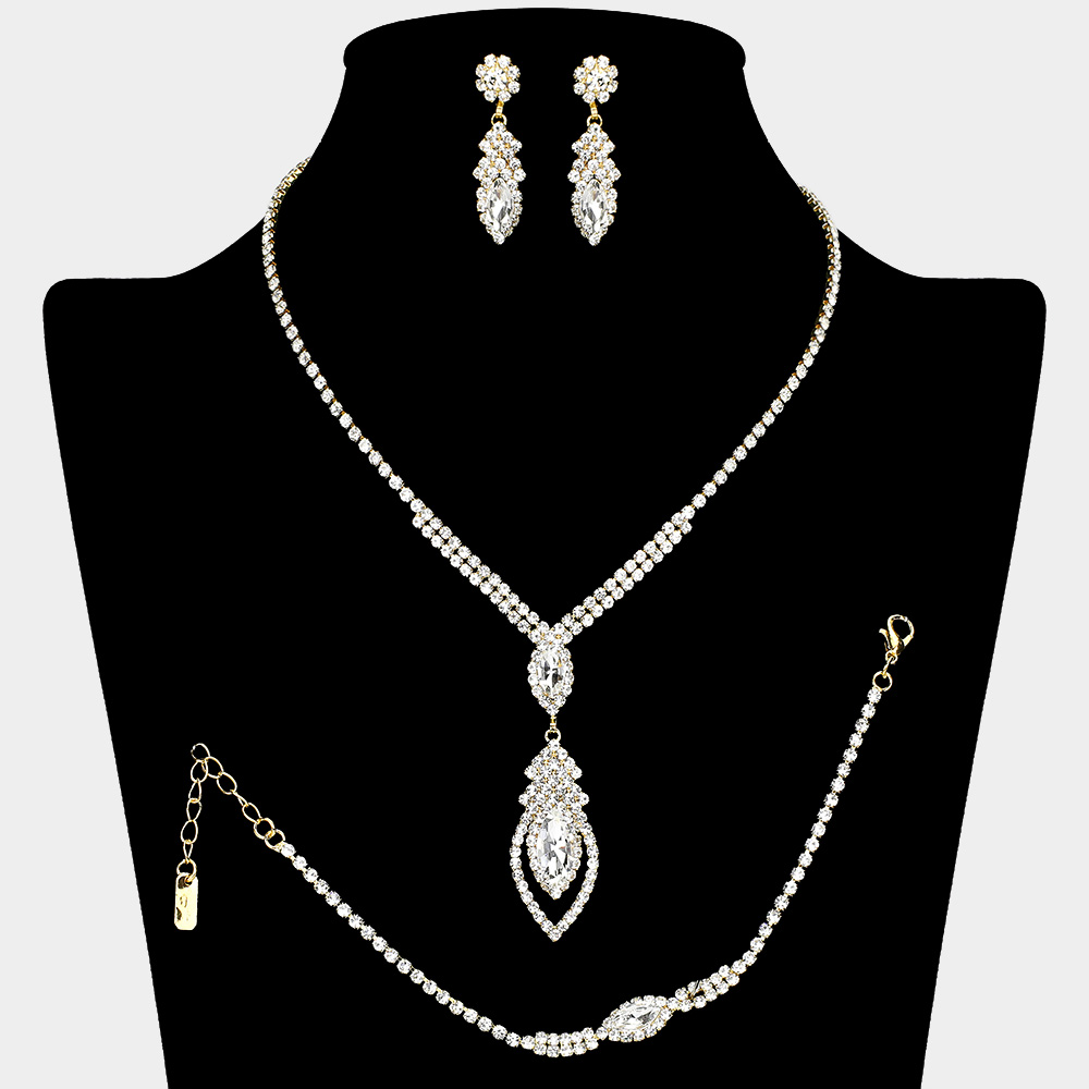 Marquise Stone Embellished Rhinestone Paved Jewelry Set