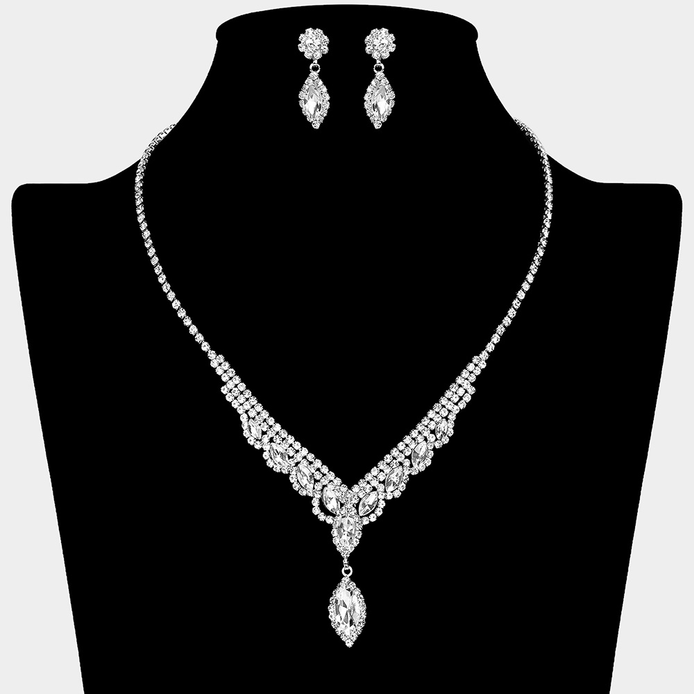 Marquise Stone Embellished Rhinestone Paved Necklace
